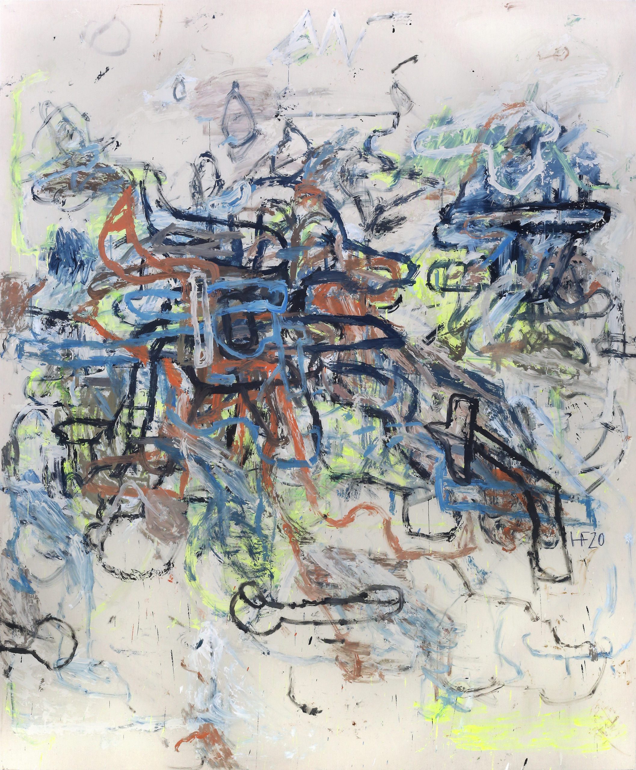 Habib Farajabadi is known for his perseverance in abstraction, continuity, and empiricism. His works usually float in the world between his conscious and unconscious. Using the all-over composition, Farajabad creates tension through the use of forceful tools’ trace of paint on unprimed canvas and powerful concentrations of rudimentary marks, often layered on top of each other. Farajabadi’s sensitive and highly energetic gestural paintings escape any geographical categorisations but instead relate to recent developments and the history of the medium painting.