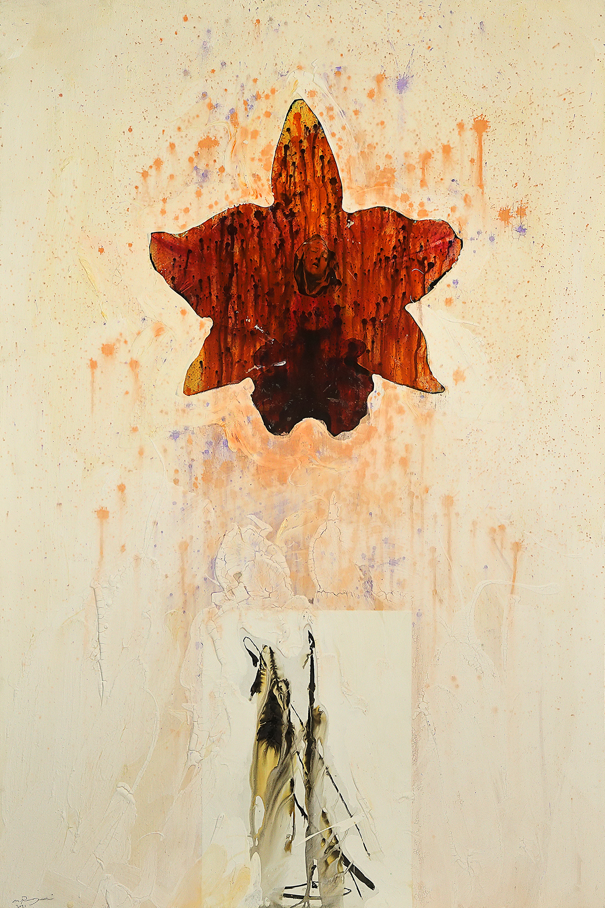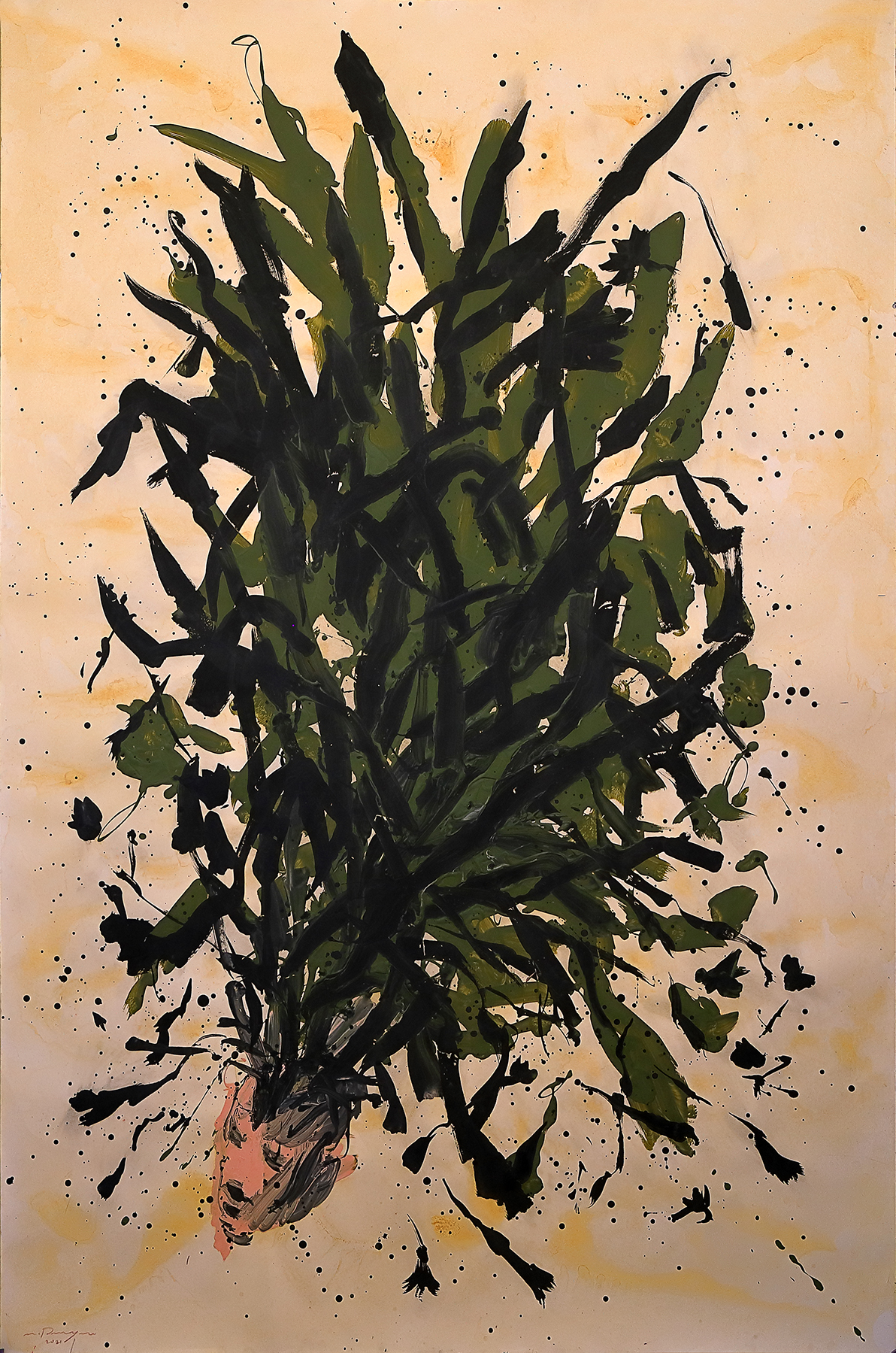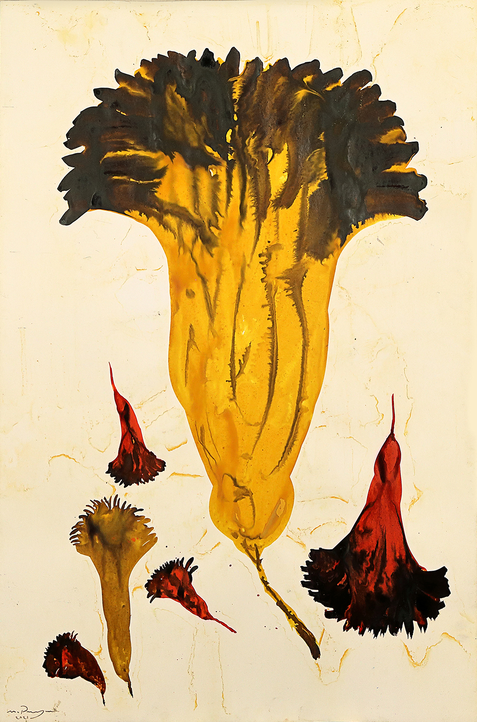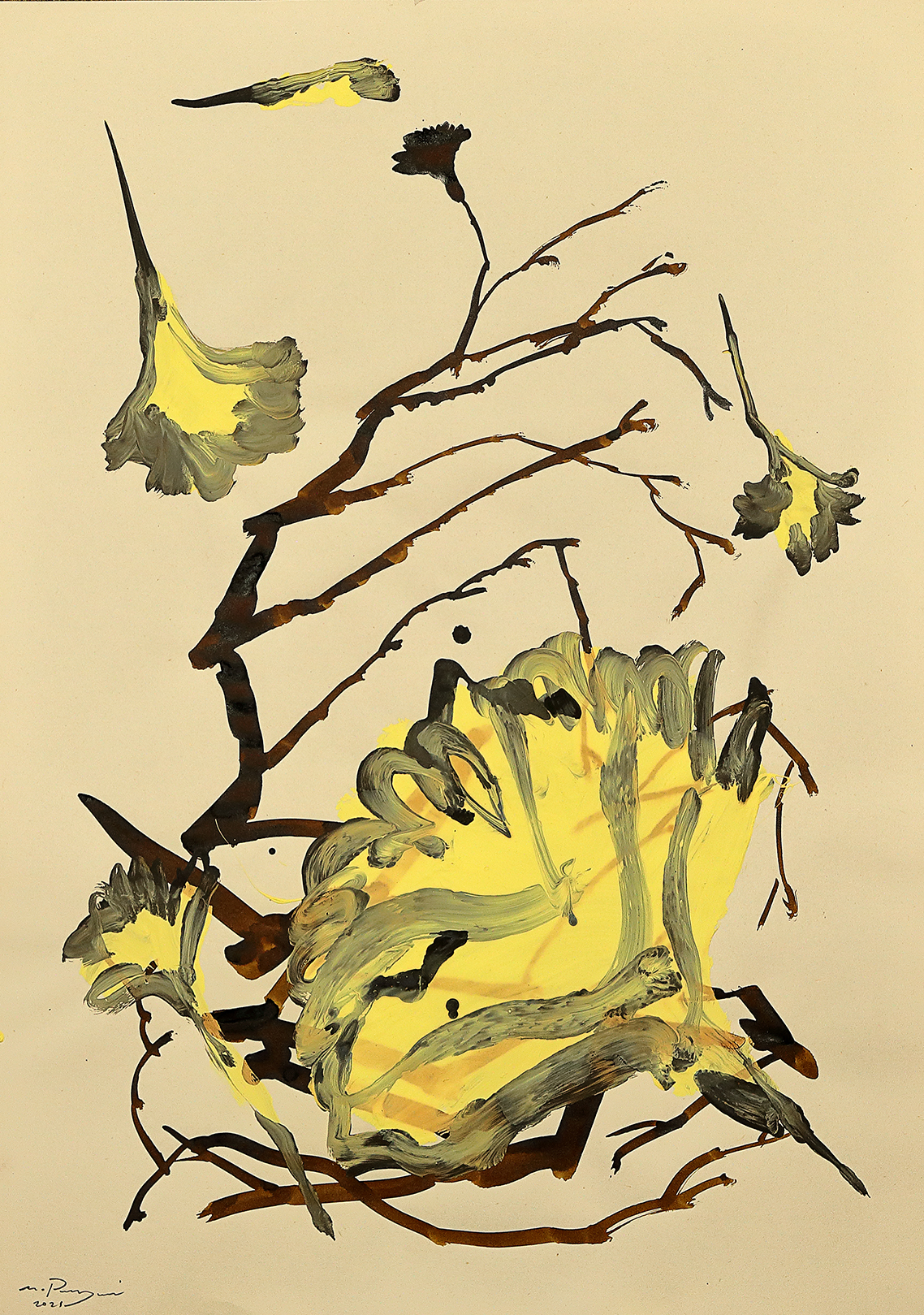 Proximity to the nature of northern Iran throughout his childhood has been a great influence, helping him discover new visual and pictorial elements. His recent works are, bigger and on canvas – unlike previous works, which were mostly smaller works on paper – enabling him to experiment with different visual qualities. While in this new approach, his focus has been on plants and flowers, rather than portraits, sphinxes and houses found in his previous works, history, and nature make up the underlying themes of his new collection, resulting from his interest in the history and the visual roots of the world. In these works, deformations can be seen in the plants and flowers, which are based on free, artistic expression, and play on the boundaries of pictorial abstraction. The title of this new collection, i.e. Pristine, in a way, highlights the importance of nature with all its different qualities.
