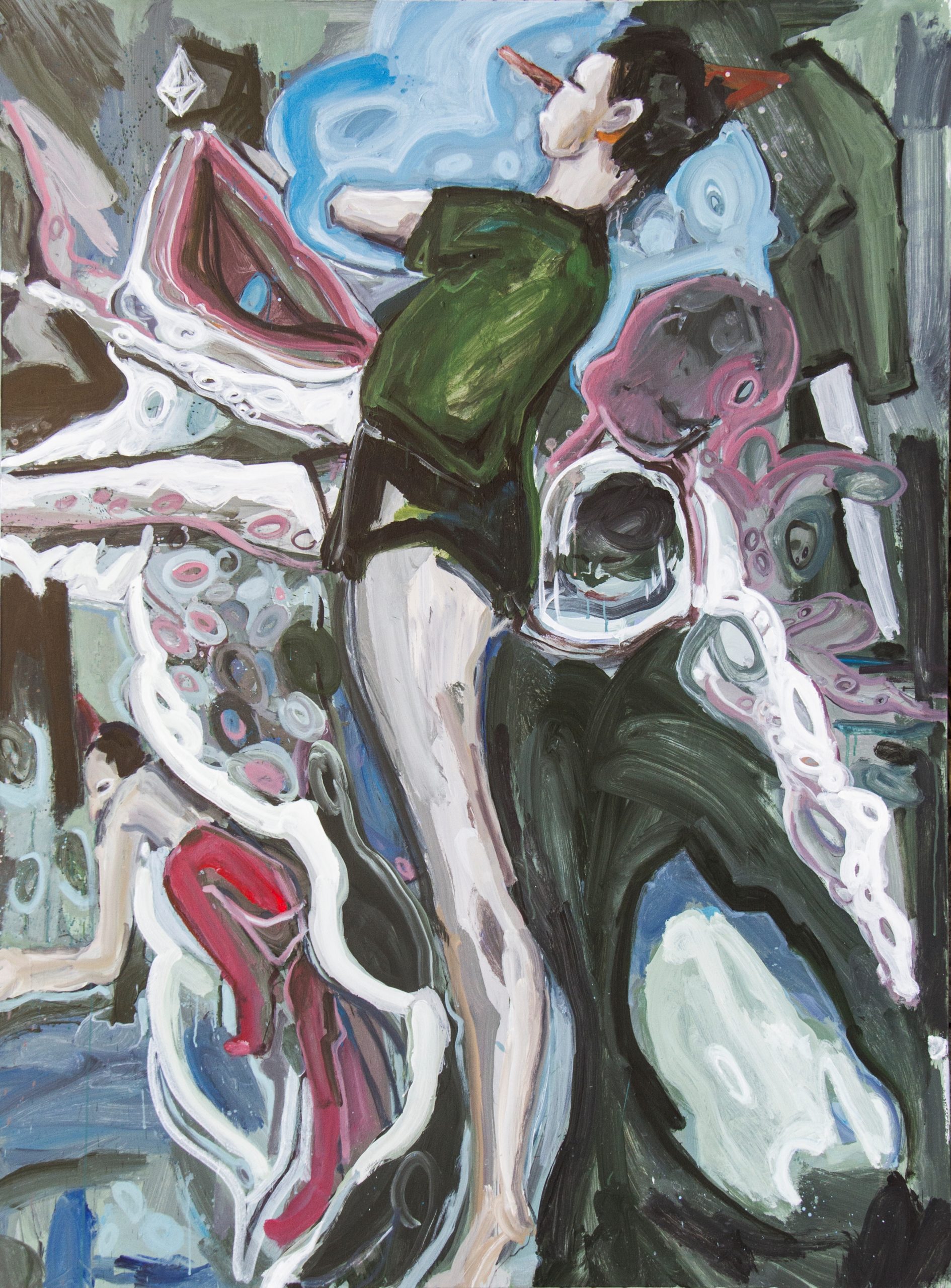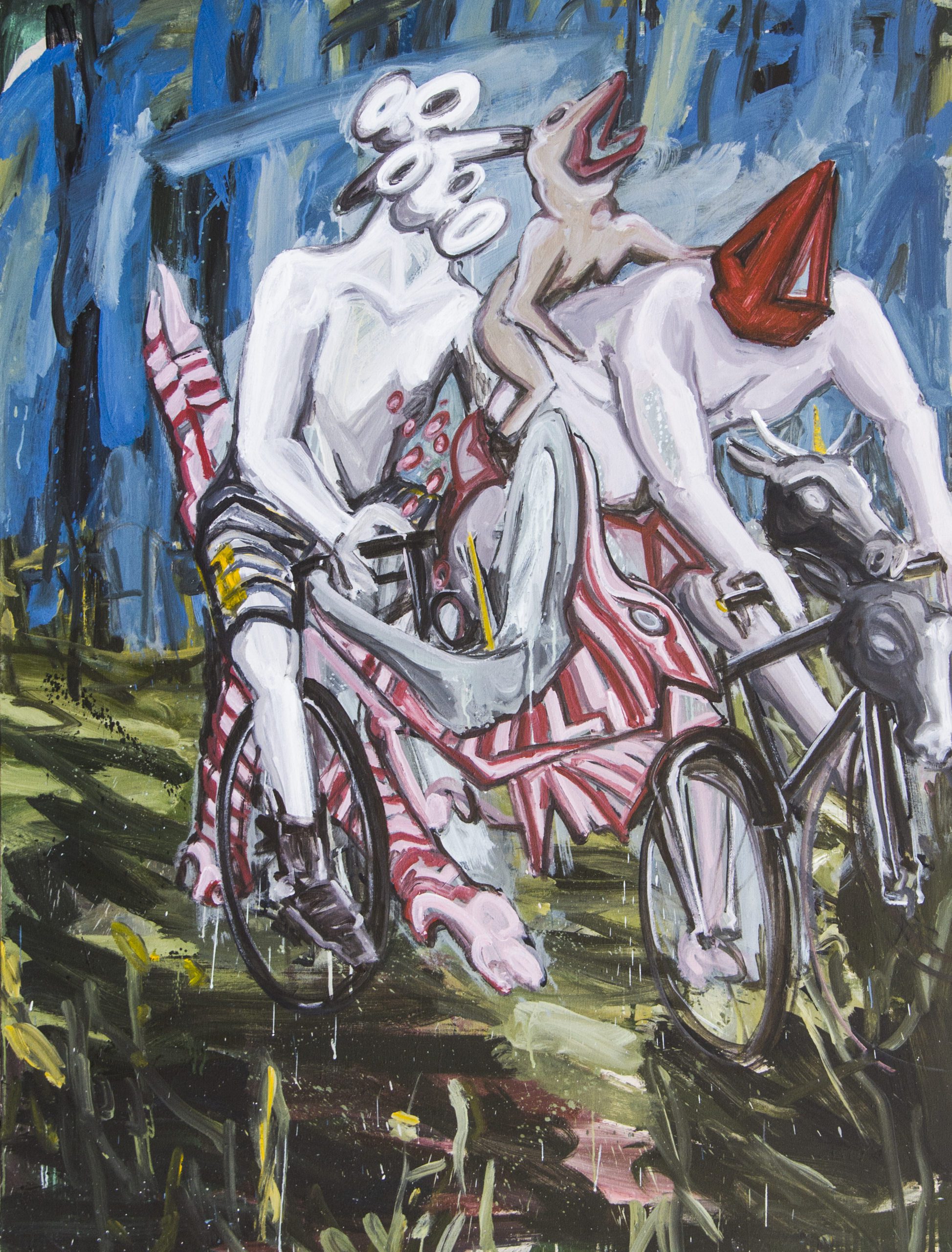 Ramtin Zad, (b. 1984, Tehran, Iran) employs familiar mythical and fictional characters to represent the struggles of modern-day through an imaginary world. As of a contemporary storyteller, Zad’s artistic practice restate the story of perpetual battles and continues problematics of human, joint with gallows humour. By incorporating a real sense of fantasy in nature, animals and humans, as well as cartoon characters he paints a world liberated from such struggles. While engaging with both historical and contemporary allegory in his work, Ramtin Zad renders the subjects he paints a quality of timelessness.