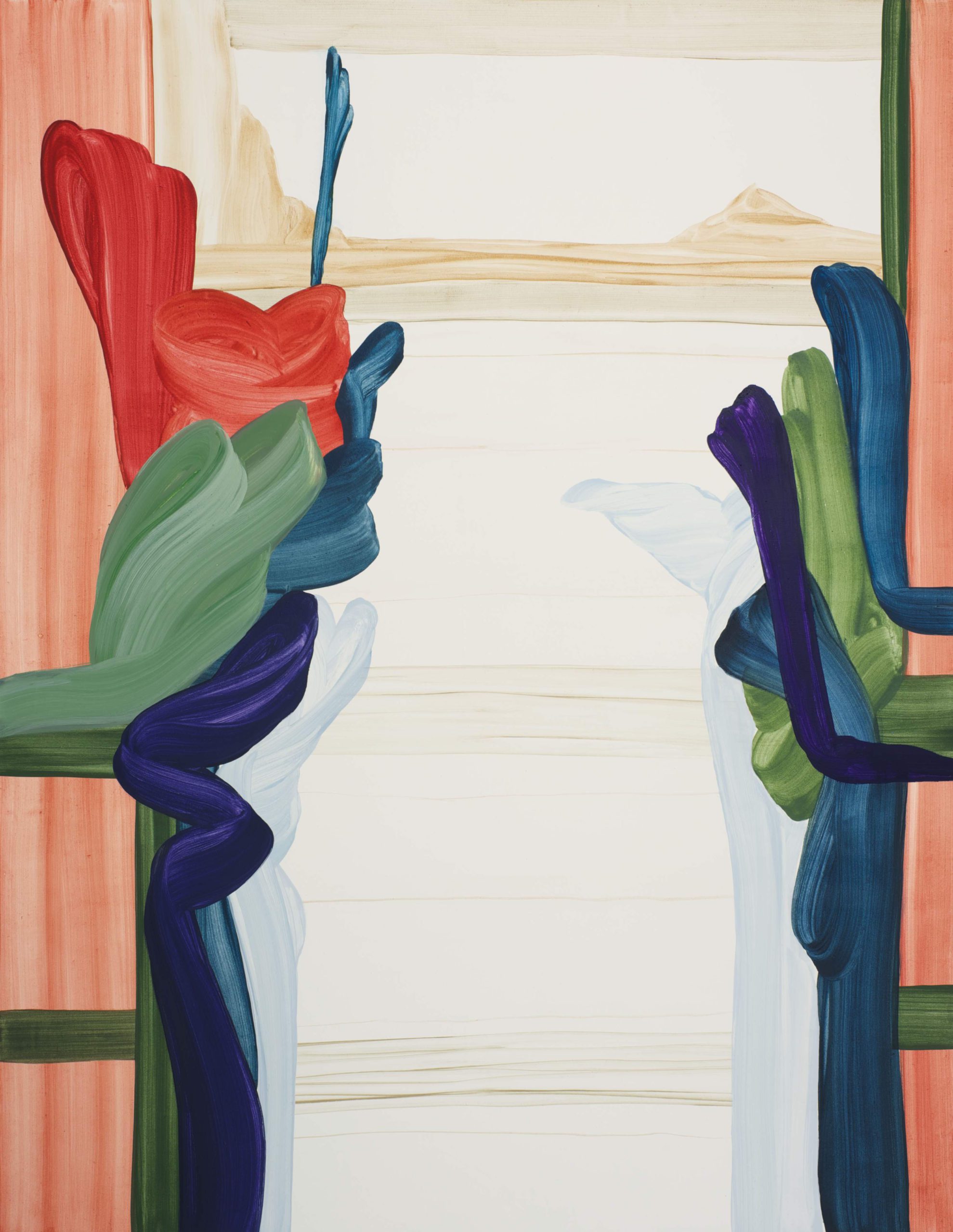 Assefjah produces her own colors in the studio, using the traditional eggtempera medium and technique. Her interest for the Italian Renaissance, is infused with the mystical beauty of the visual productions of Ancient Persia. The free gesture inscribes itself through wide ribbons. The flexibility of the movements and the strokes calls to mind calligraphy.