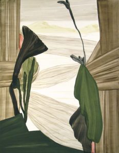 The paintings are an invitation for the eye to look through a window opened to a nostalgic space, telling stories of dreamed landscapes between abstraction and figuration.